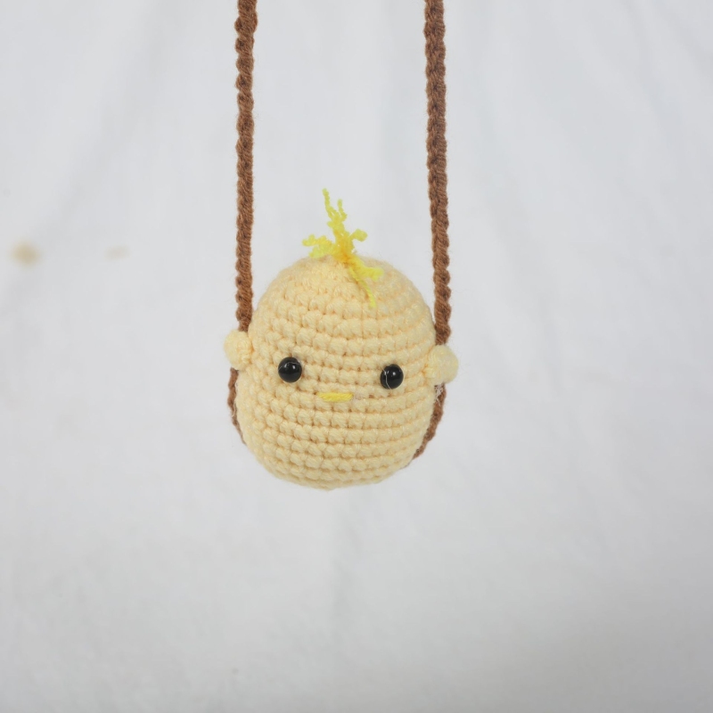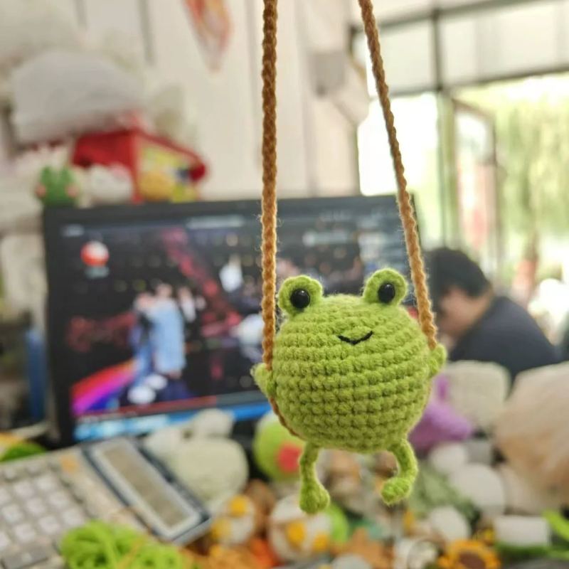 Adorable Crochet Frog on a Swing - Whimsical Handmade Car Hanging Charm, Cute Baby Duck Crochet