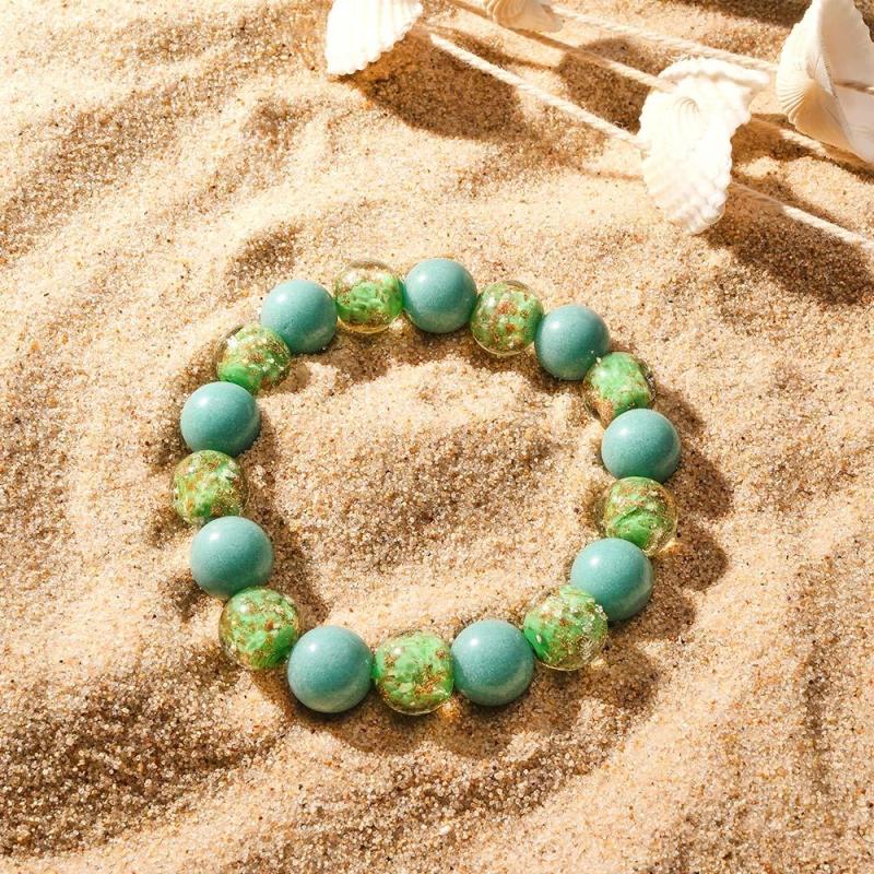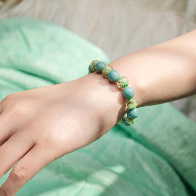 Army Green Firefly Glass Stretch Beaded Bracelet Glow in the Dark Luminous Bracelet