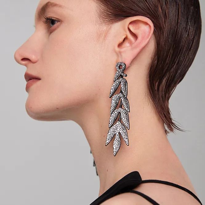Bamboo Collection Ten Bamboo Leaves Tassel Earrings Full Of Diamonds