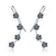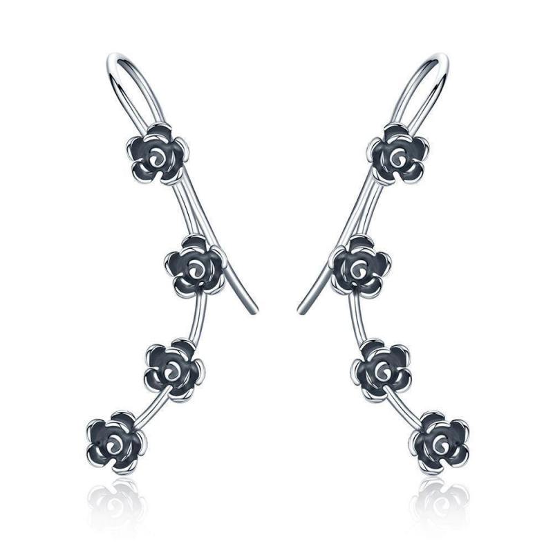 Black Flowers Drop Earrings Silver