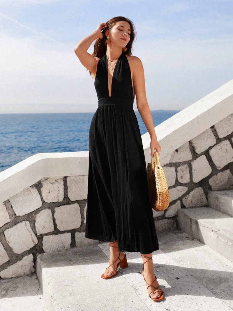 Burning Man Plunging V-Neck Backless Maxi Dress Festival A-Line Split Thigh Gown for Desert Goddess Look, Flowy Chiffon Long Dress