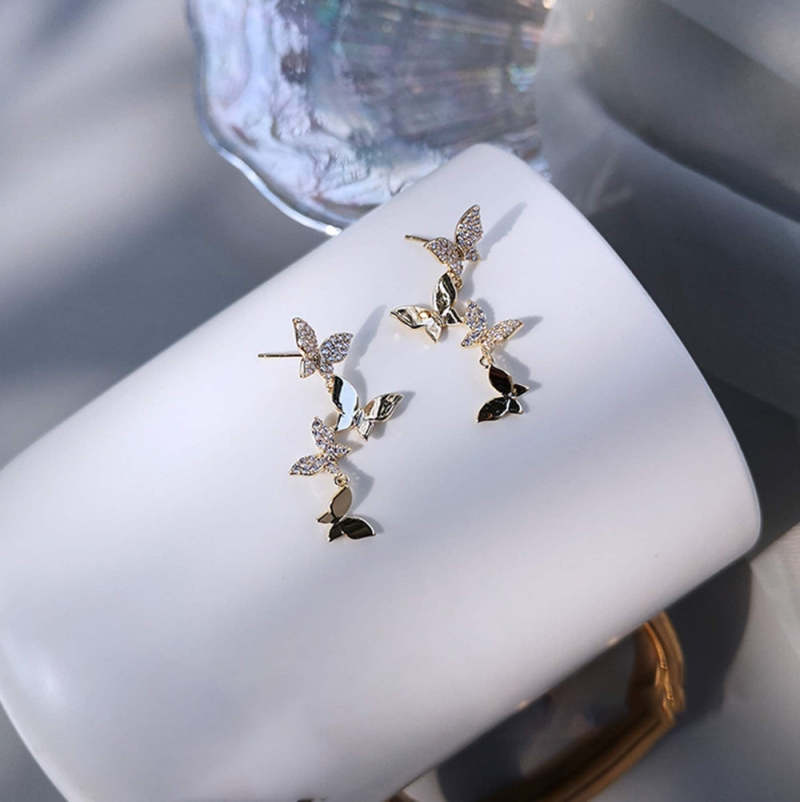 Butterfly Linear Drop Earrings Social Butterfly Long Earrings Bridesmaid Gift
