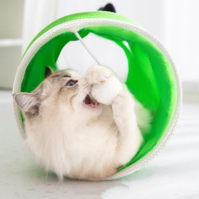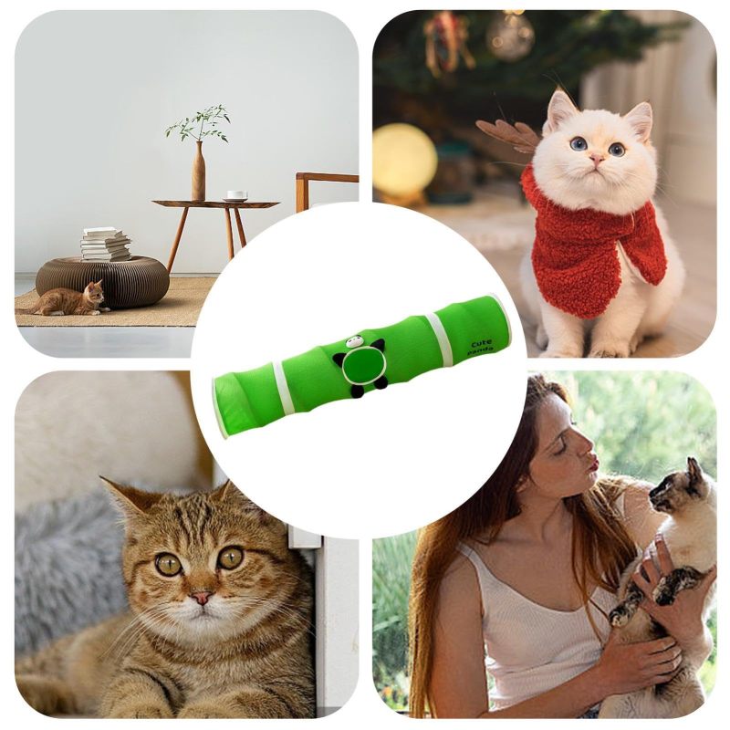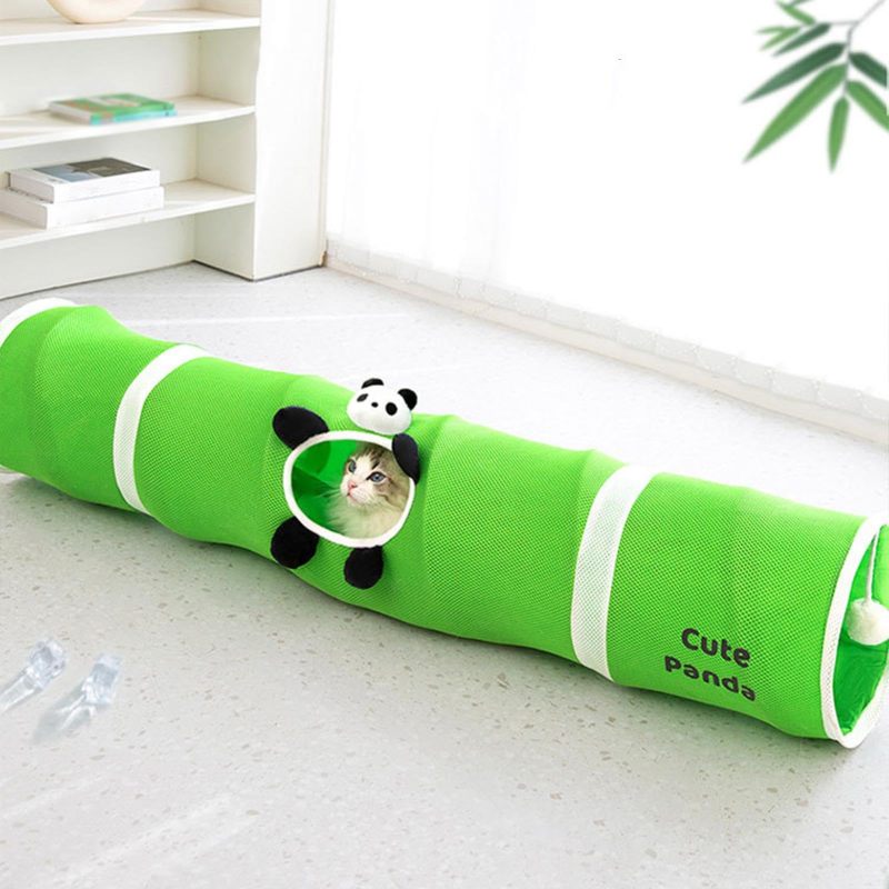 Cartoon Cat Tunnel Foldable Straight Tube Play Toy for Indoor Cats, Panda Bambu Style Polyester Pet Tunnel for Play & Storage Gift For Pet Lovers