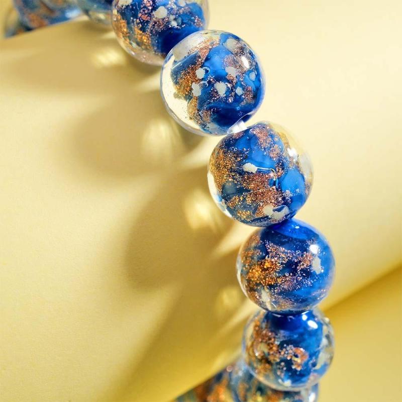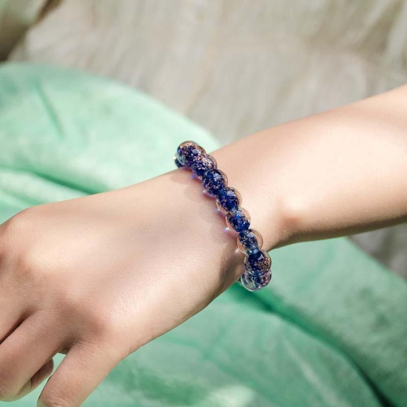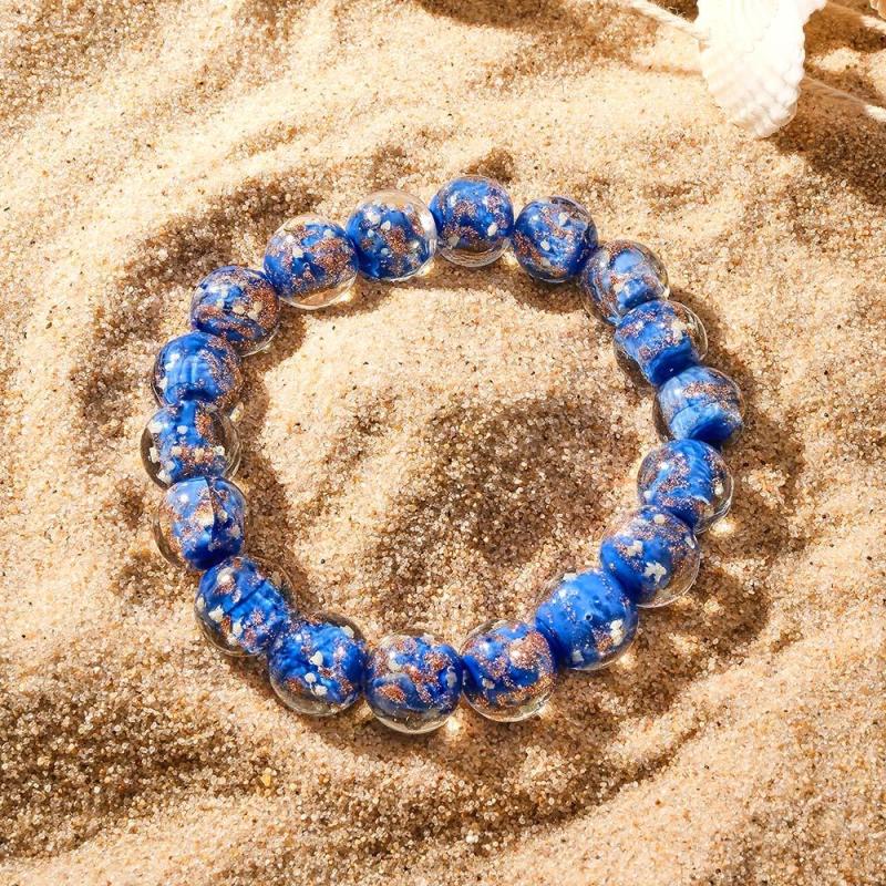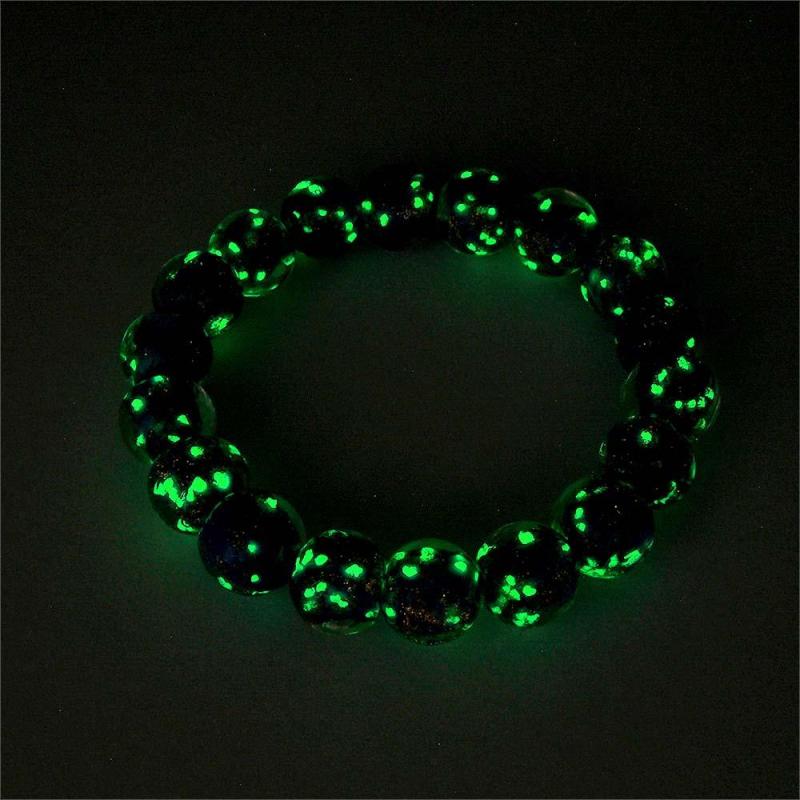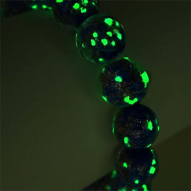 Cerulean Blue Firefly Glass Stretch Beaded Bracelet Glow in the Dark Luminous Bracelet