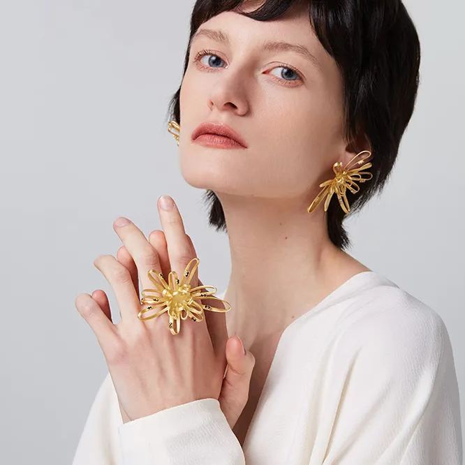Chrysanthemum Collection Linear Golden Double Finger Ring