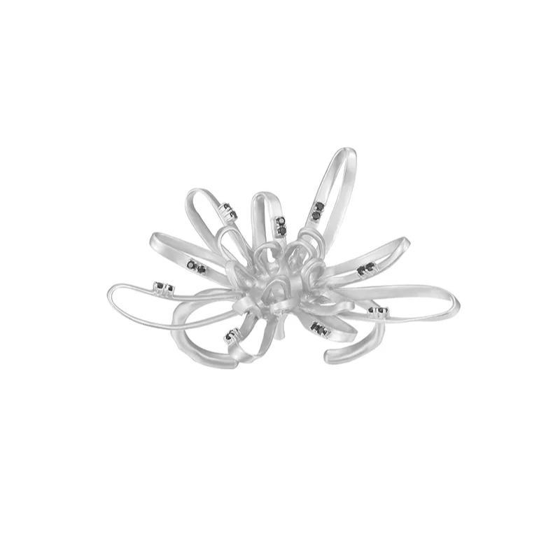 Chrysanthemum Collection Linear Silver Double Finger Ring