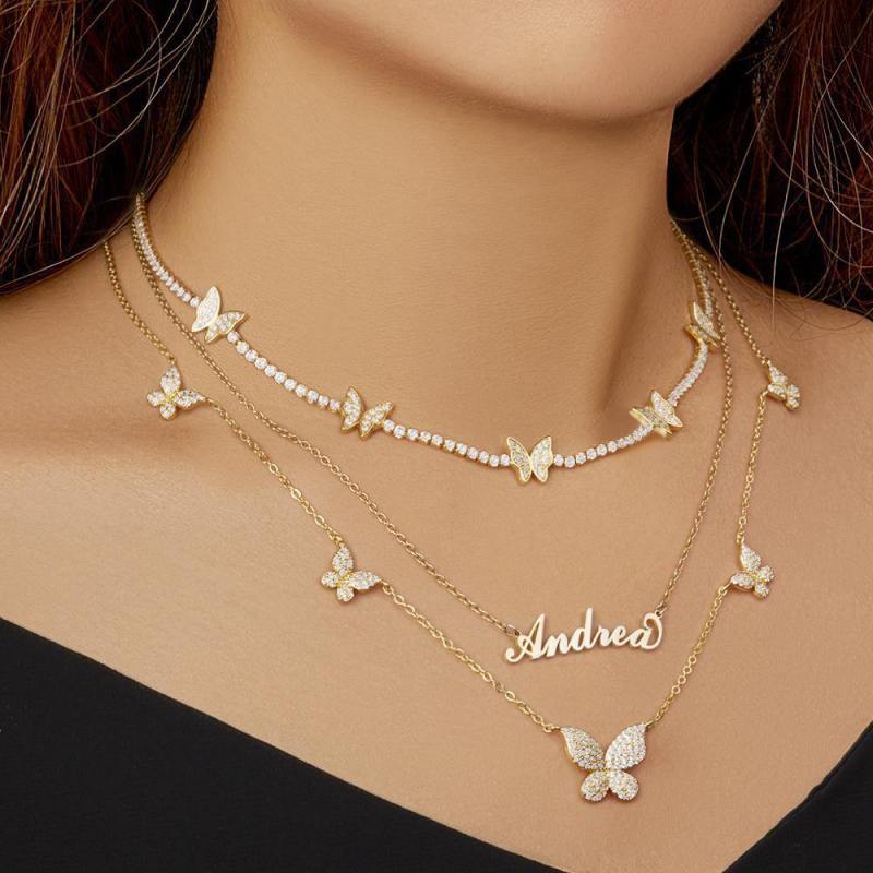 Clavicle Necklace with Butterfly for Girlfriend Gifts Zircon