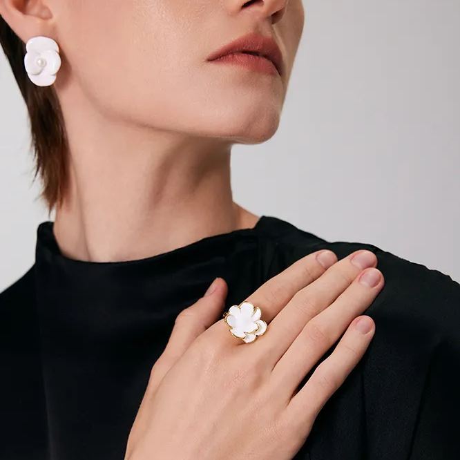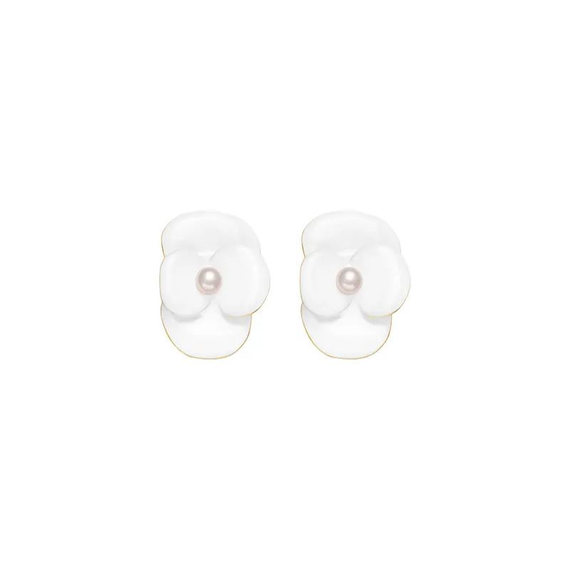 Corn Poppy Collection Mini White Flower Pearl Enamel Earrings