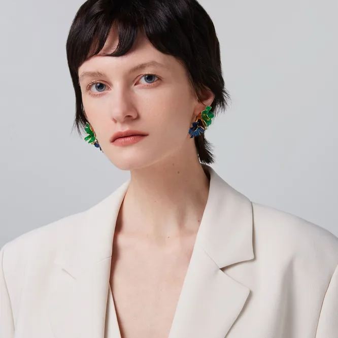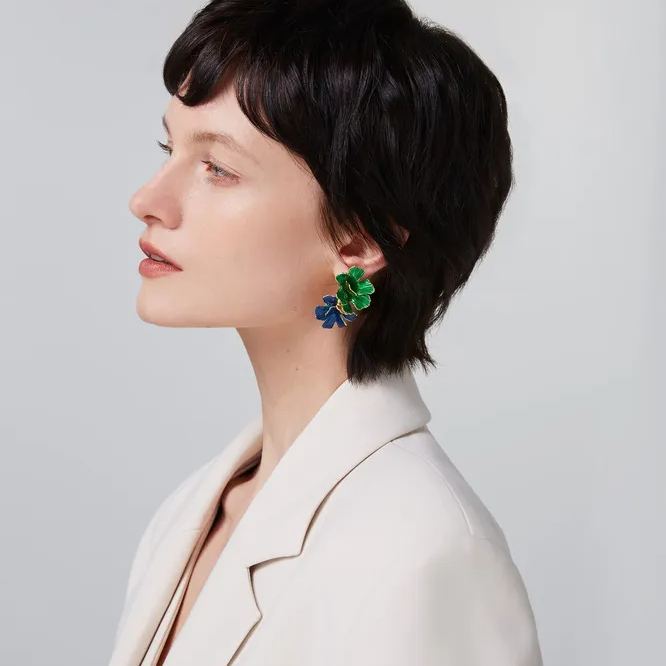 Cosmos Collection Bifloral Two-Tone Studs Earrings