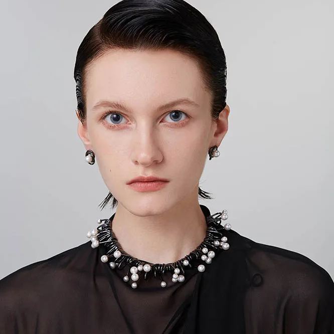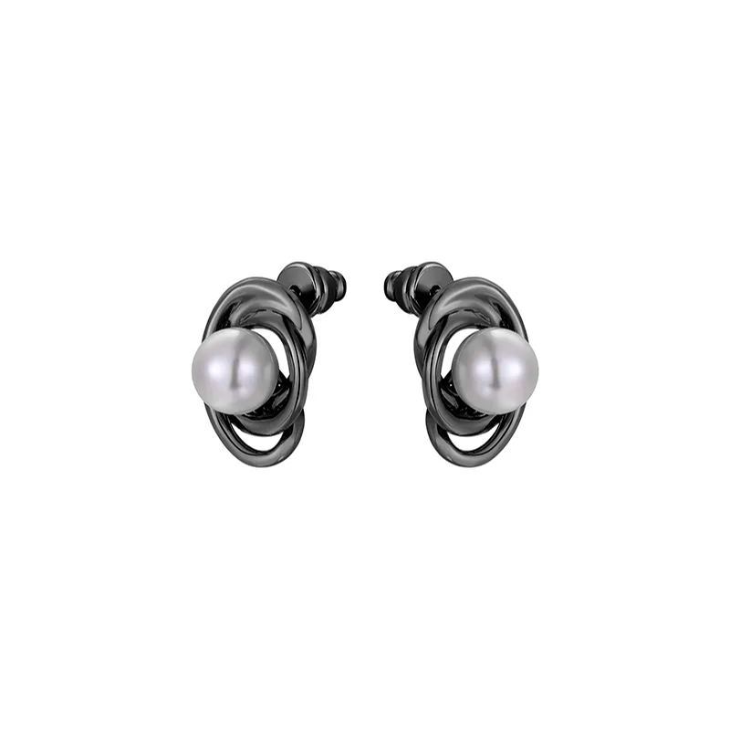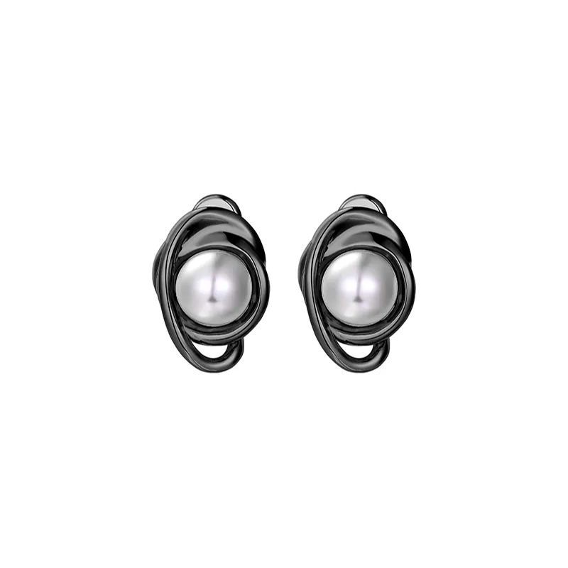 Curvilinear Collection Black Pearl Brass Stud Earrings