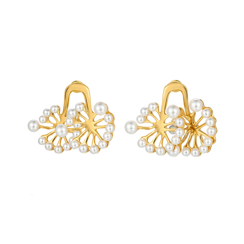 Dandelion Collection Bifloral Shape With Pearls Studs Earrings