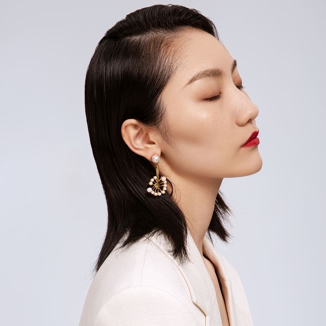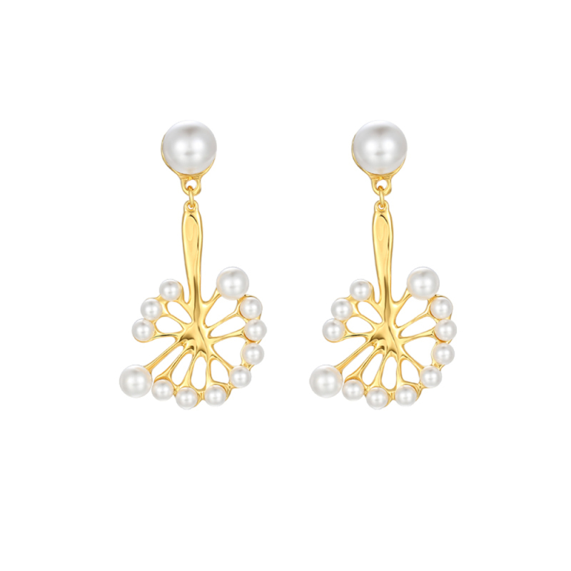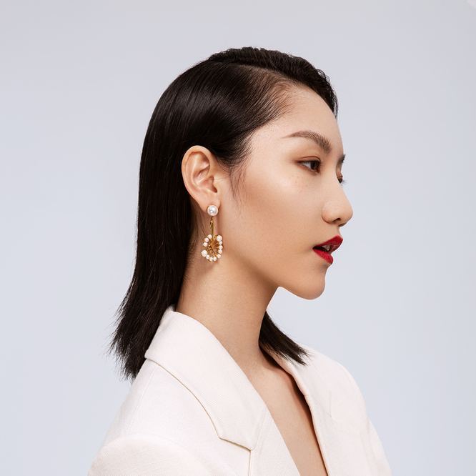 Dandelion Collection Single Flower With Thirteen Pearls Earrings