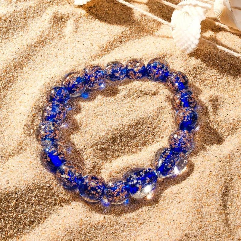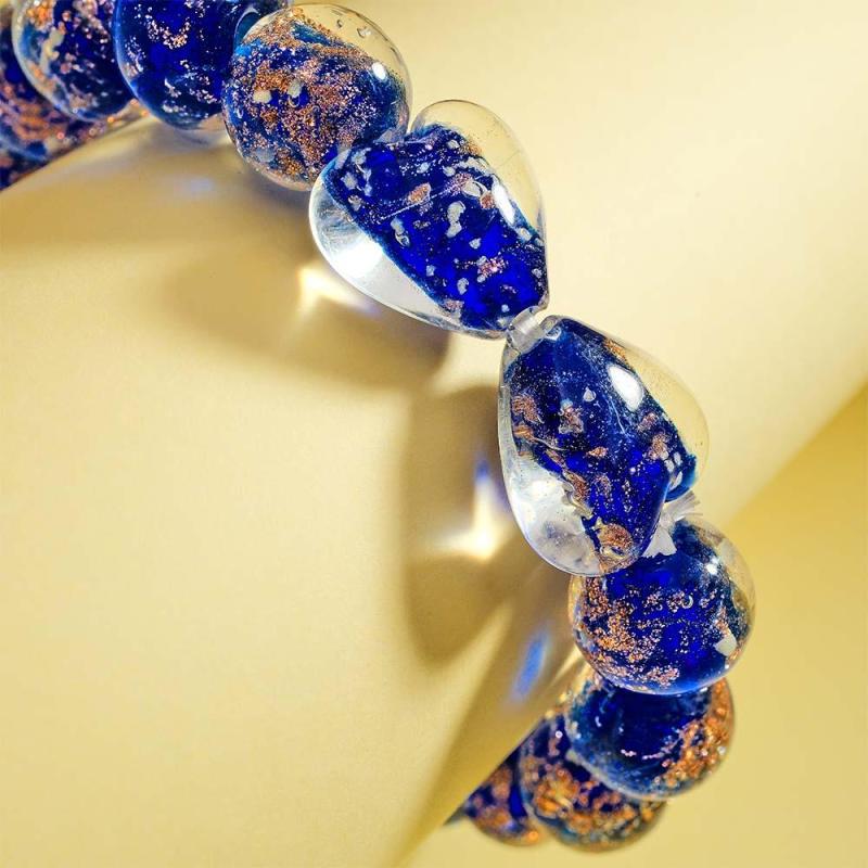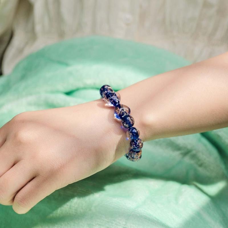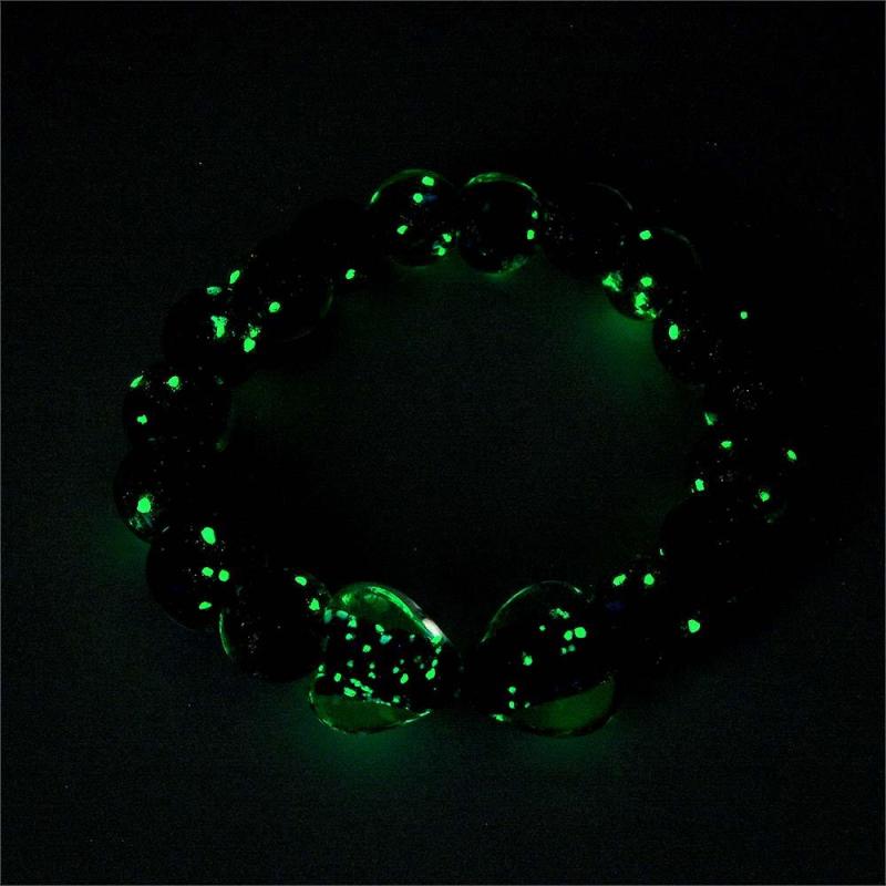 Dark Blue Heart-to-Heart Firefly Glass Stretch Beaded Bracelet Glow in the Dark Luminous Bracelet