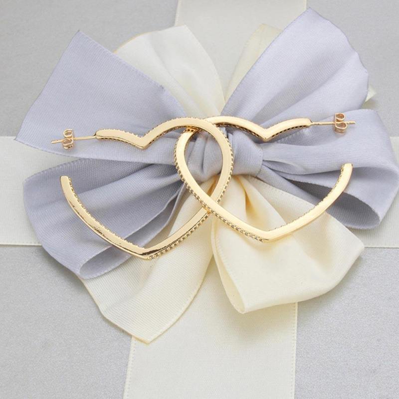 Earrings Heart Shape Copper Zircon