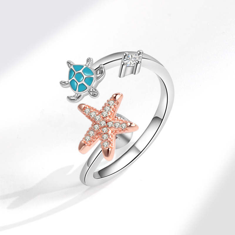 Fidget Anti-anxiety Ring Sea Turtle and Starfish Open Adjustable Spinner Ring Jewelry Gifts for Her