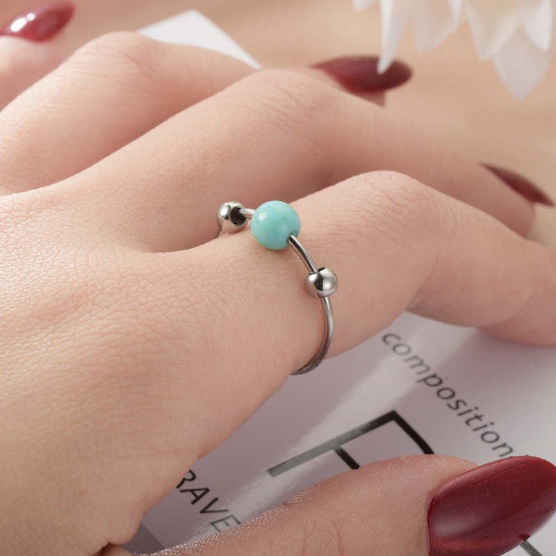 Fidget Anti-anxiety Ring Turquoise Bead Open Adjustable Spinner Ring Jewelry Gifts for Her