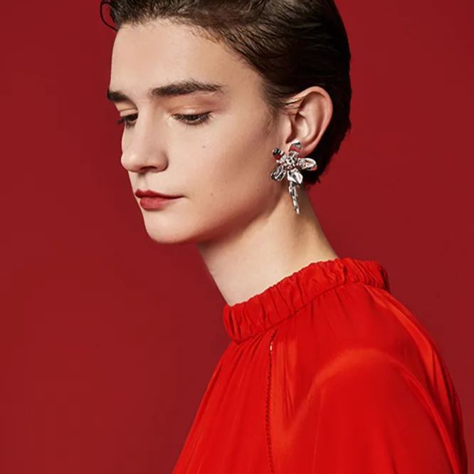 Five Petals Connect With Thorn Detachable Silver Earrings