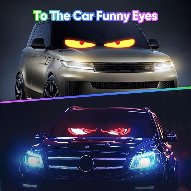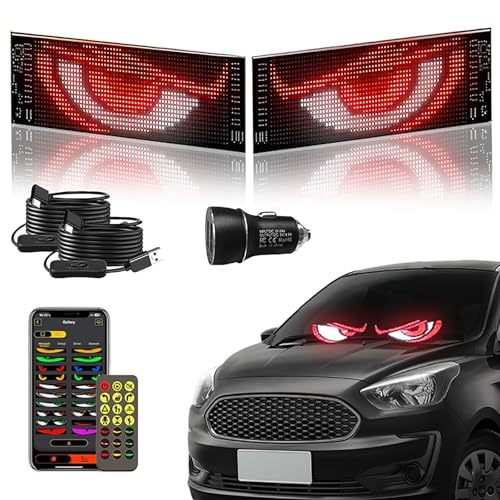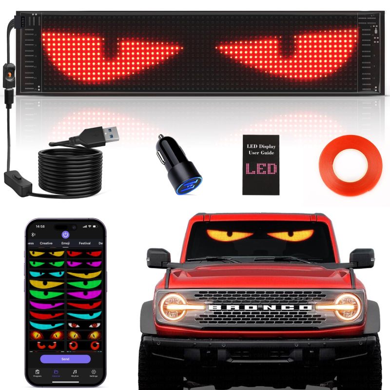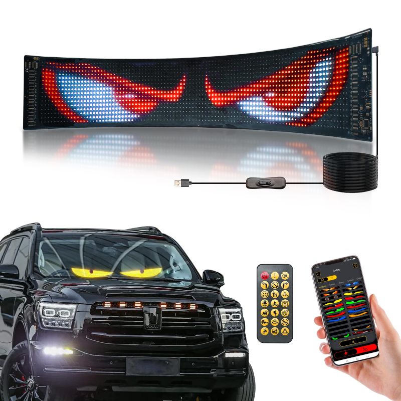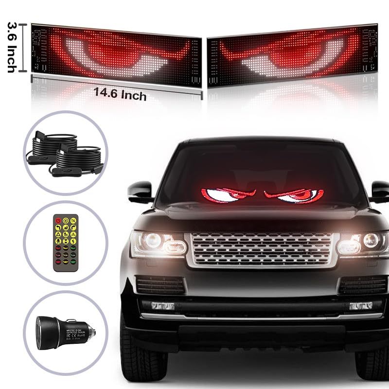 Flexible LED Devil Eyes Windshield Sign Animated Display Panel for Cars & Trucks with Remote Control & Bluetooth App Custom LED Sign for Bars, Shops, Hotels