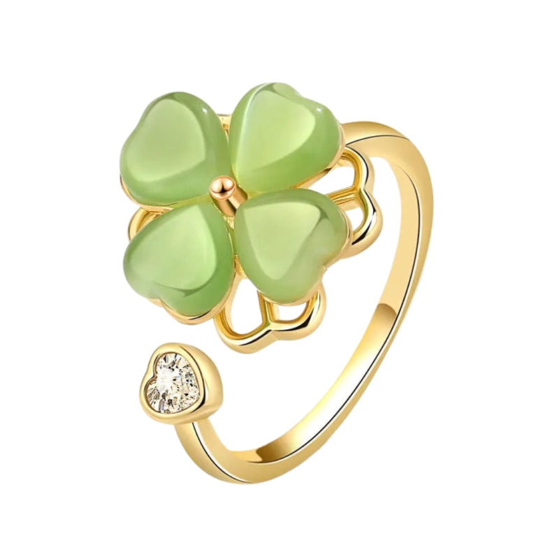 Cat's Eye Four Leaf Clover Love Anxiety Worry Fidget Spinner Ring