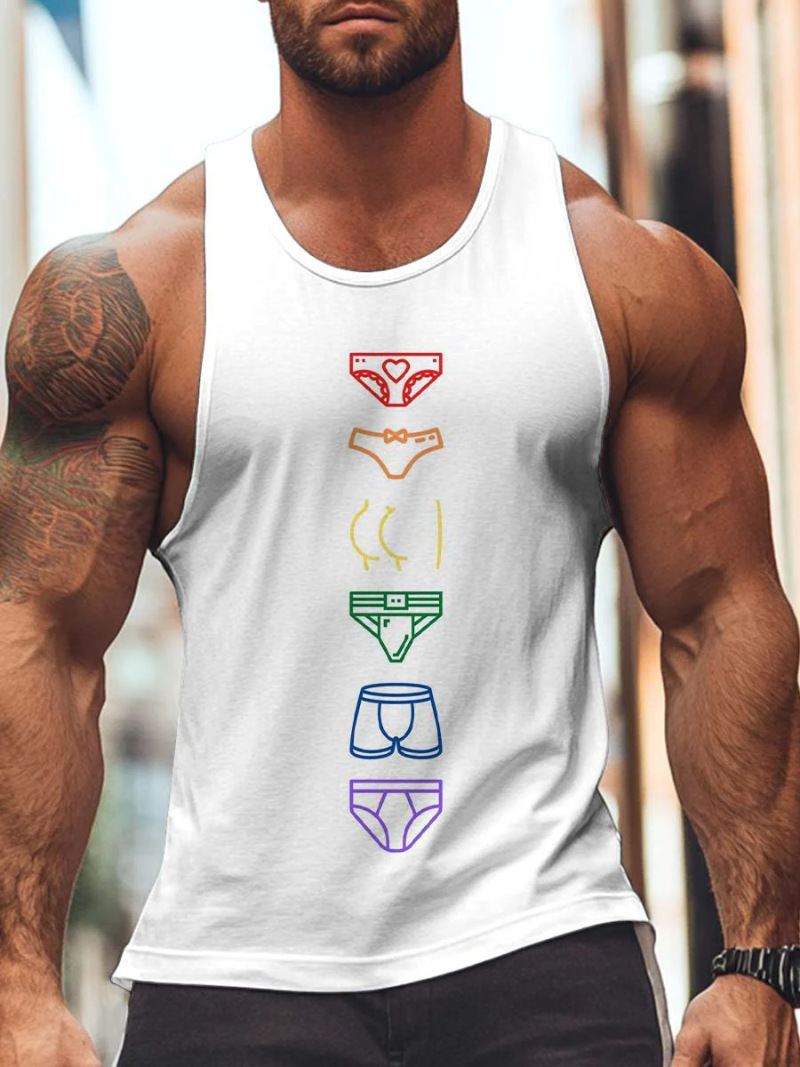 2025 Gay Rainbow Underwear Print Style Tank Top Sizes XS-7XL Colorful Gay Man Casual Sleeveless Shirt