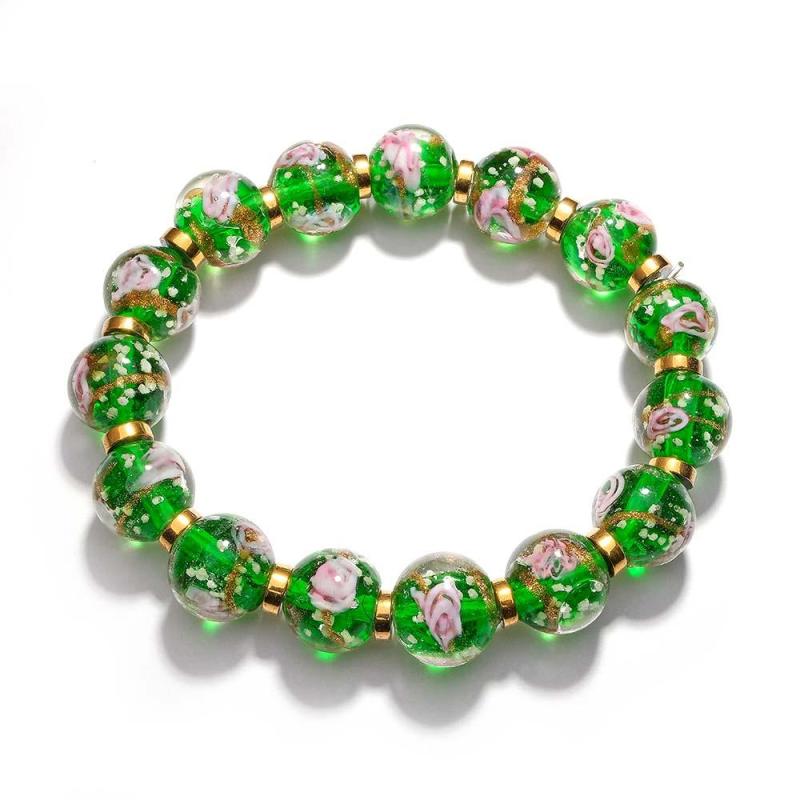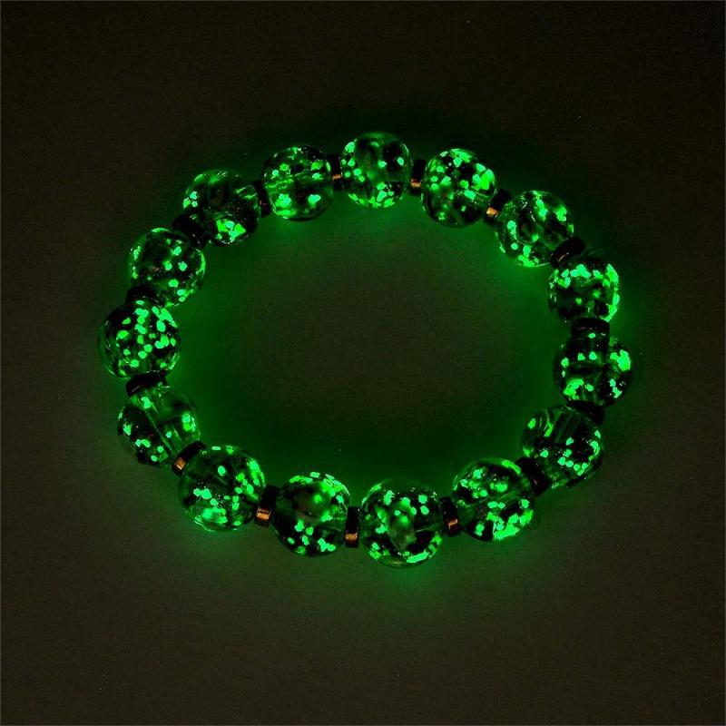 Green with Flowers Firefly Glass Stretch Beaded Bracelet Glow in the Dark Luminous Bracelet