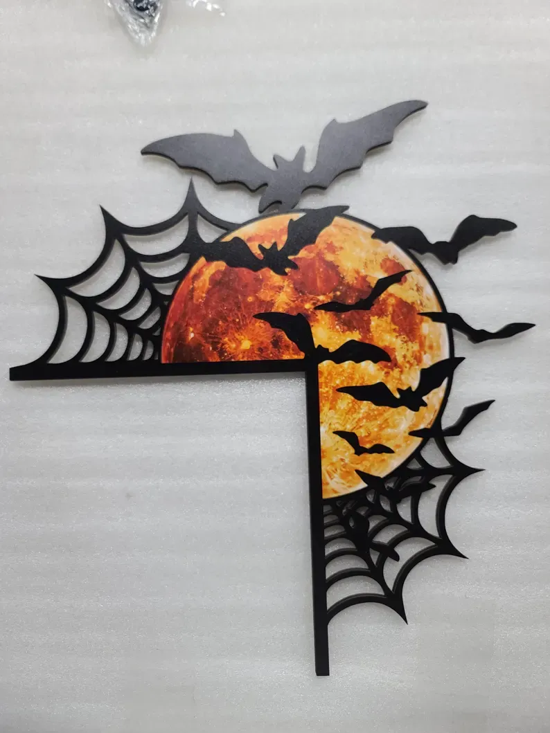 Halloween Door Corner Wooden Sign, Spider Web Moon and Bats Corner Decor, Fireplace Decor, Halloween Gift for Family, Spooky Gift