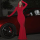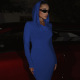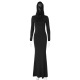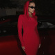 Hooded Maxi Dress for Women Elegant Solid Color Bodycon Long Sleeve Gown, Slim Fit Flowy Skirt (Red / Blue / Black, S–L)