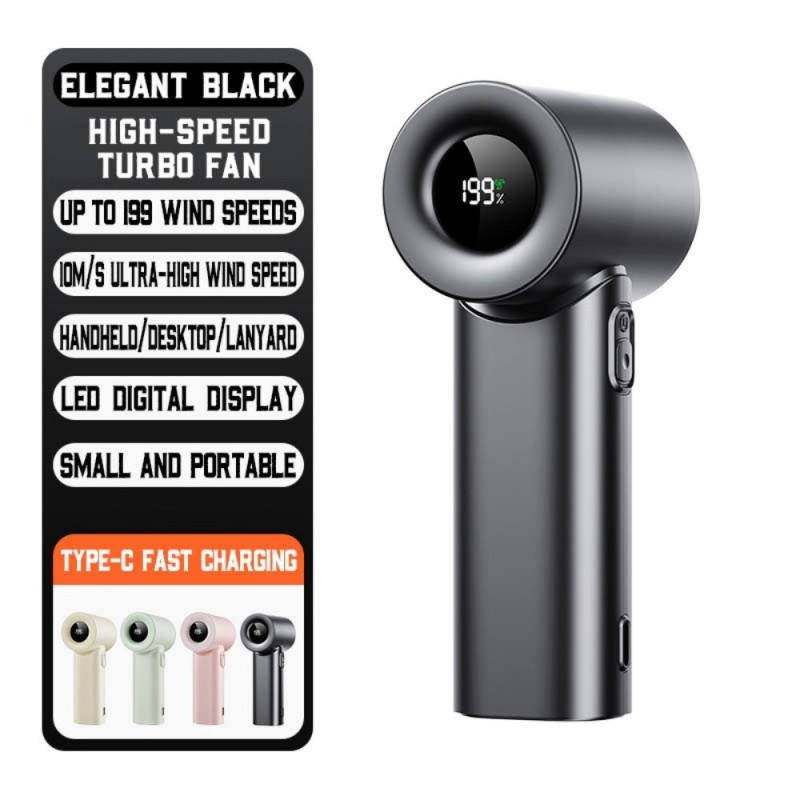 Mini USB Handheld Fan, 5-Speed Rechargeable Pocket Fan with Brushless Motor, Quiet & Portable