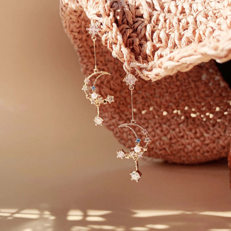 Moon and Star Celestial Pearl Night Sky Drop Earrings