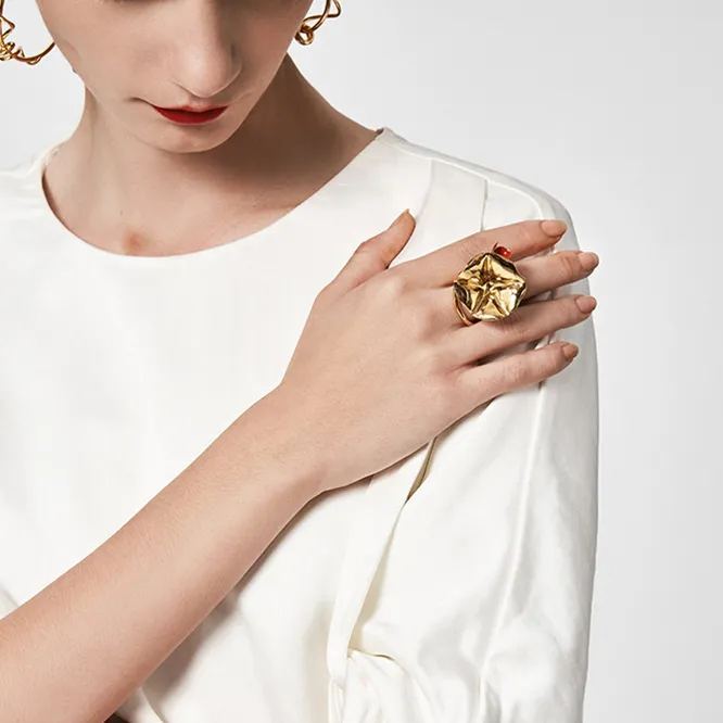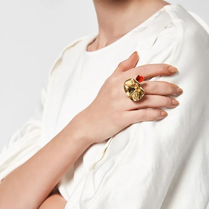 Morning Glory Collection Bifloral Ring With Red Enamel Size 13