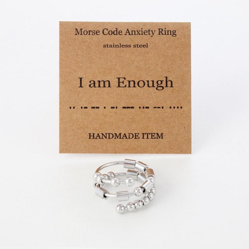 Morse Code Anxiety Spinner Ring Relieving Anxiety Ring Jewelry Gifts for Women Men