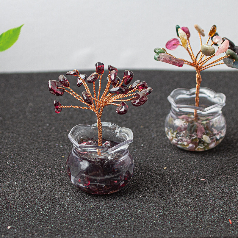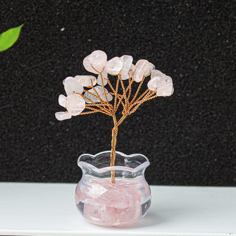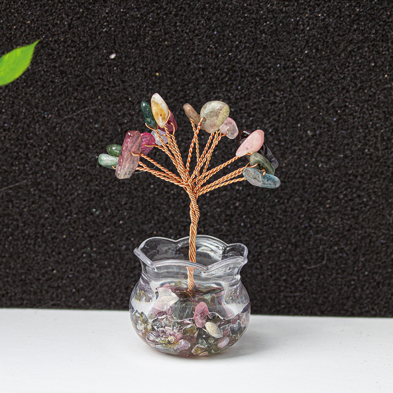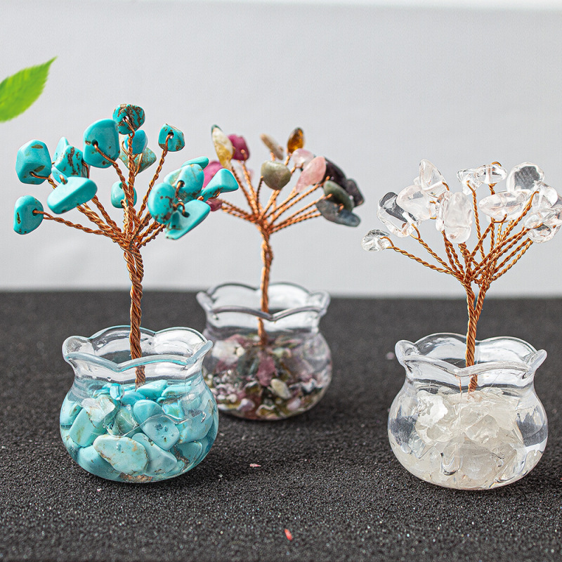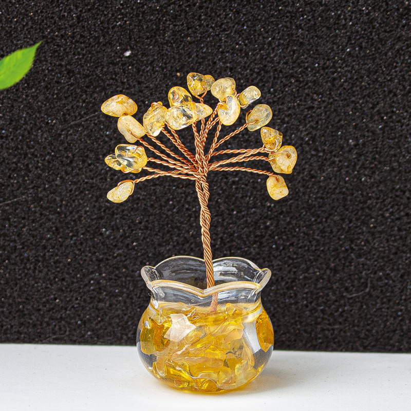 Natural Crystal Tree Ornament Handmade Gemstone Wealth Tree Turn Bad Luck into Good Luck Tree with Citrine, Rose Quartz, Amethyst & More Feng Shui Decor for Luck, Love, and Energy Balance