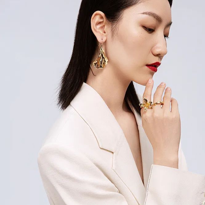 Orchids Collection Asymmetrical Golden Petal Earrings