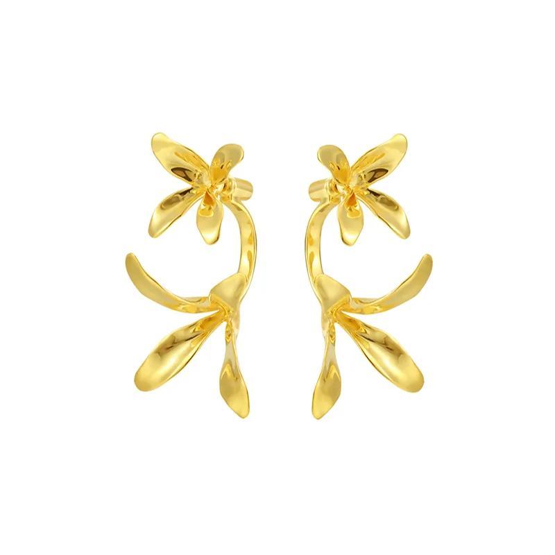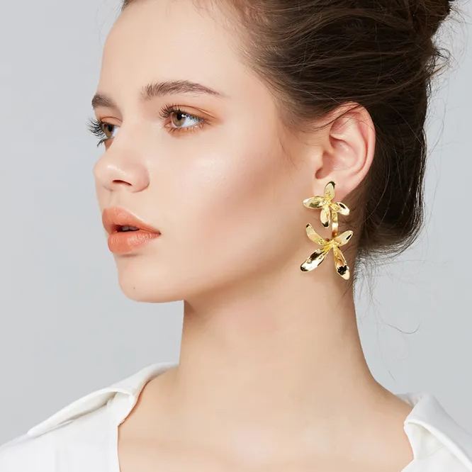 Orchids Collection Bifloral Drop Earrings 14k Gold Plated