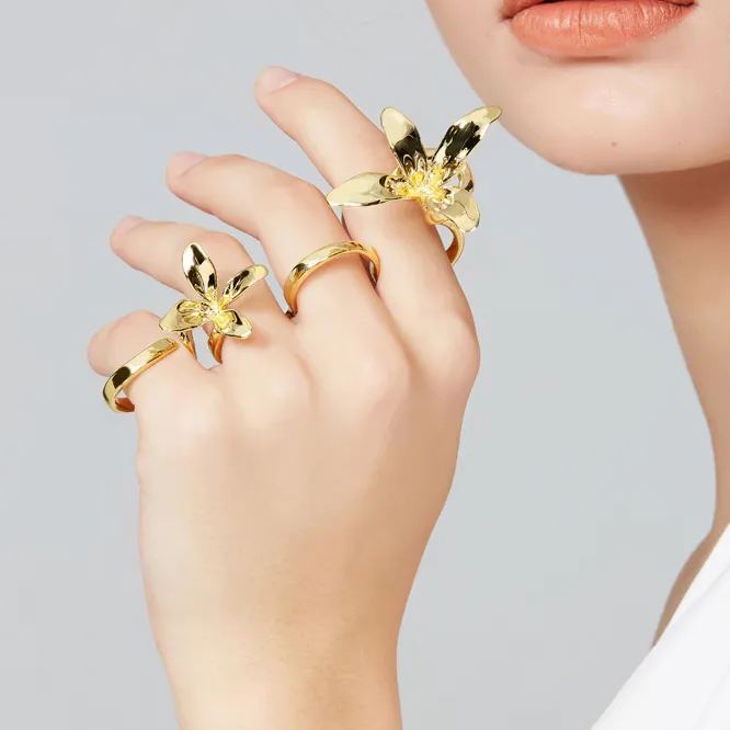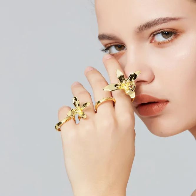 Orchids Collection Bifloral Four Finger Ring Free Size
