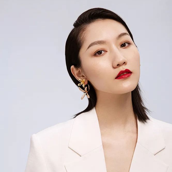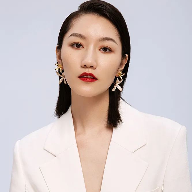 Orchids Collection Golden Bifloral Diamond Earrings