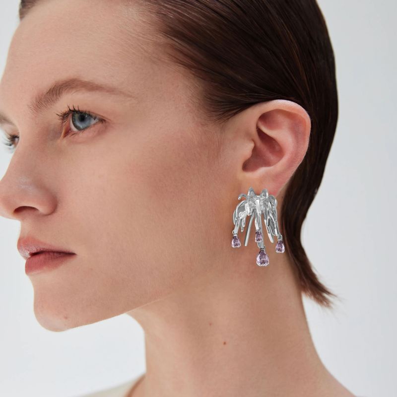 Palms Collection Branches Shape Silver Earrings