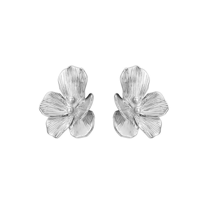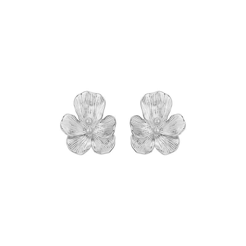 Pansy Collection Flower Shape Silver Earrings With Pearl