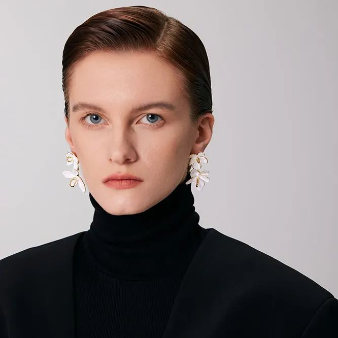 Peach Blooming Collection Classic Bifloral Earrings