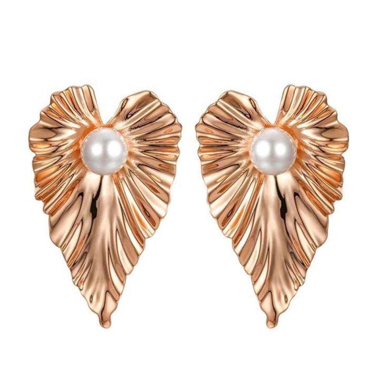 Pearl Earrings Heart Shape Rose Gold Plated Cooper