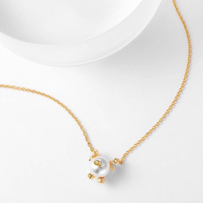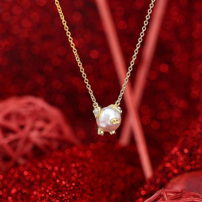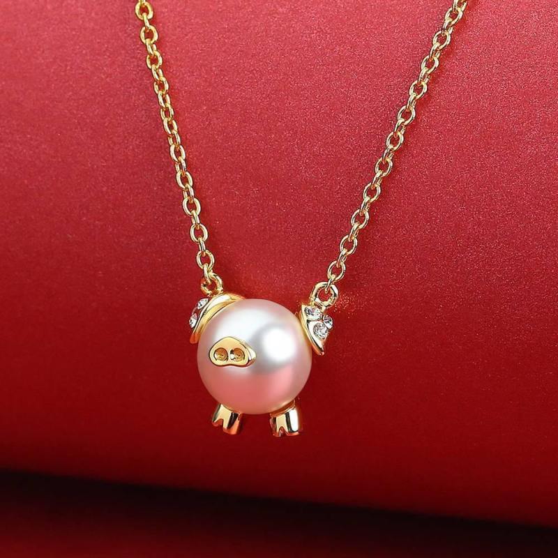 Pearl Pig Pendant Necklace 14K Gold Plated Silver