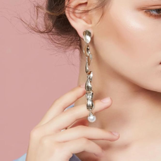 Petals Collection Eight Petals Silver Tassel Ear Clips With Pearls