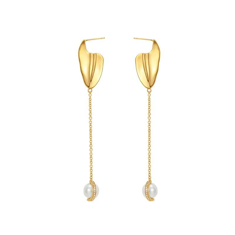 Petals Collection Petal Tassel Golden Earrings With Pearl Crystal