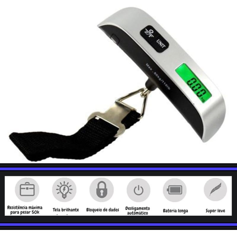 Portable Digital Hand Scale – Weighs Luggage, Fishing Gear & Bags Up to 50kg / 110lb with Hook, LCD Display & Tare Function
