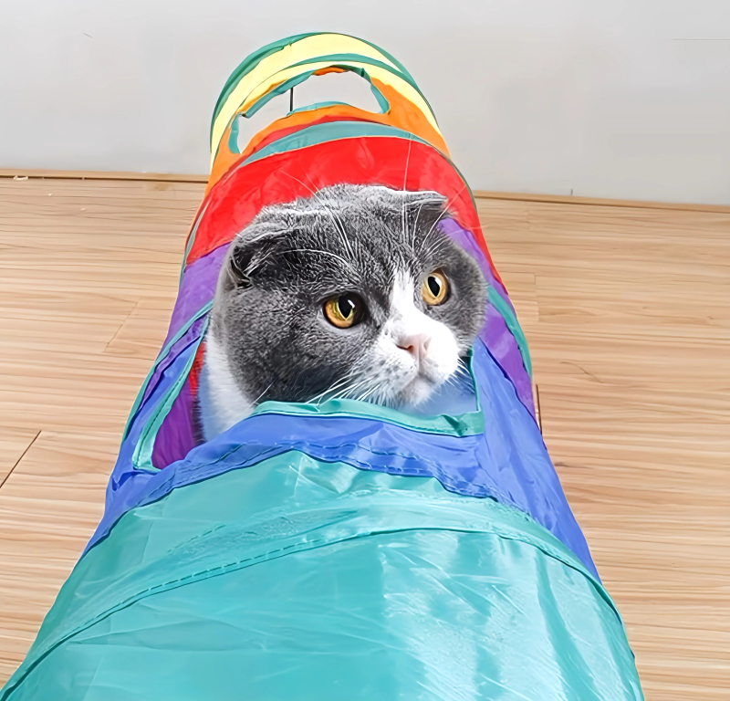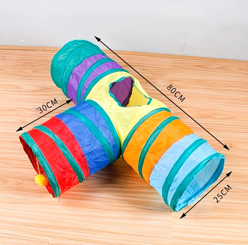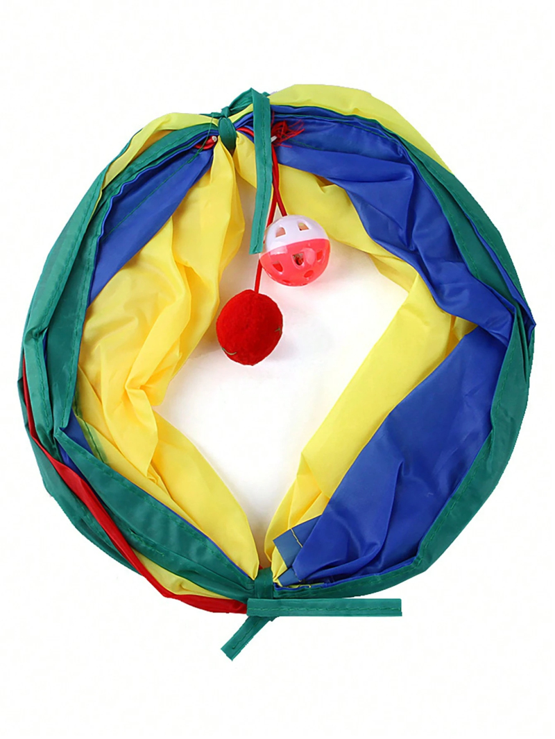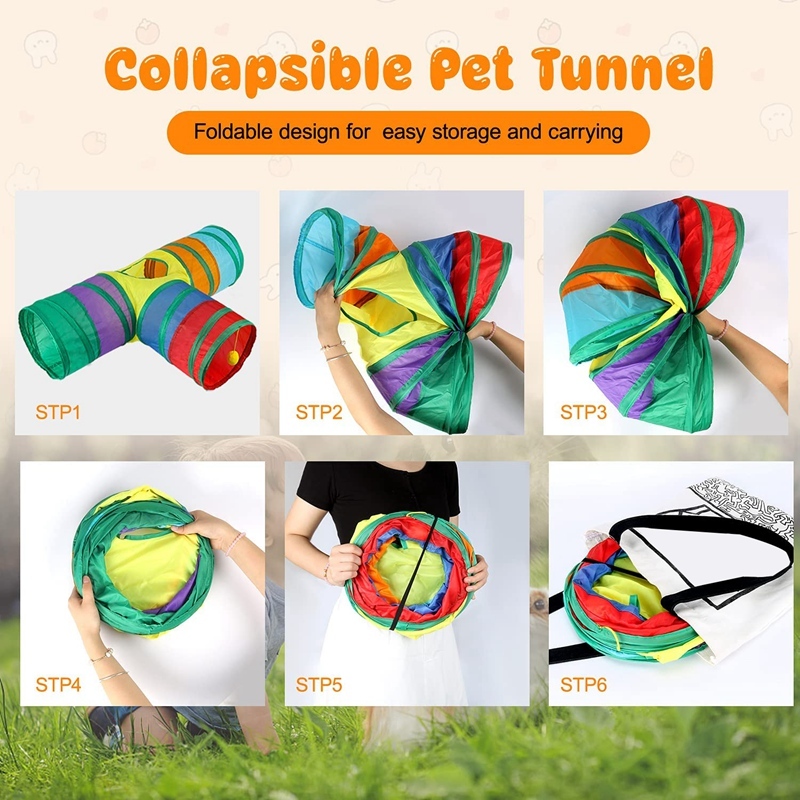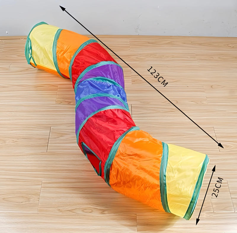 Rainbow Cat Tunnel Toy for Indoor Running Fun for Cats Foldable Play Tube with Peek Hole & Hanging Ball for Kittens, Puppies, and Rabbits