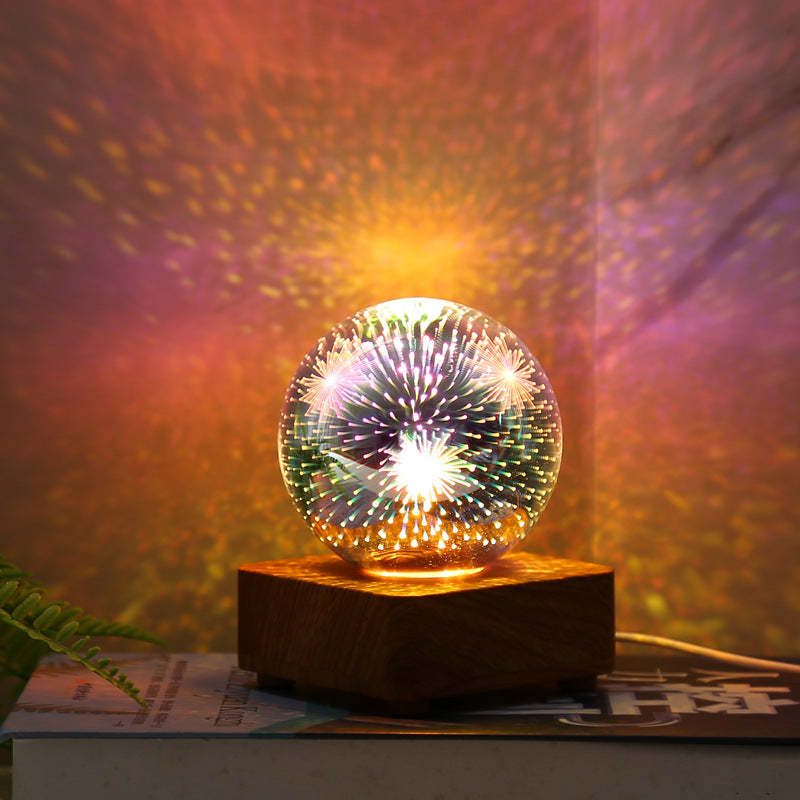 Round Glass Ball 3D Fireworks Night Light LED Home Bedroom Decor USB Table Desk Bedside Lamp Kids Gifts