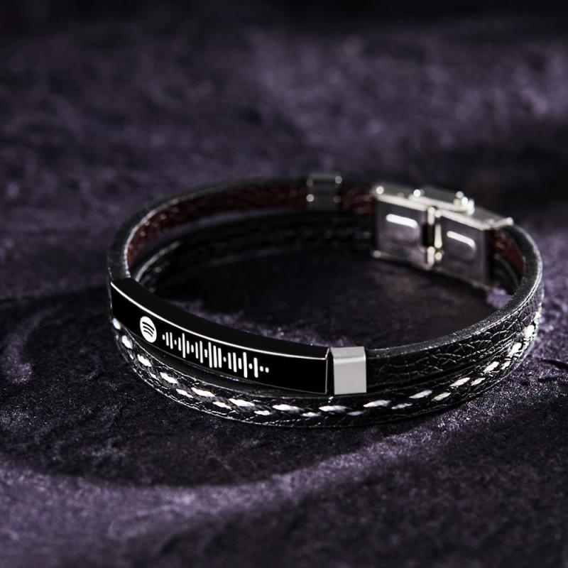 Scannable Spotify Men's Bracelet Custom Music Bracelet Leather Gifts Gift For Him On Valentine's Day