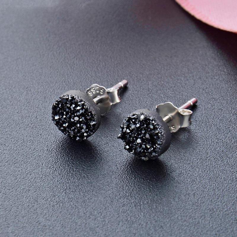 Simple Style Stud Earrings Silver Black 6mm