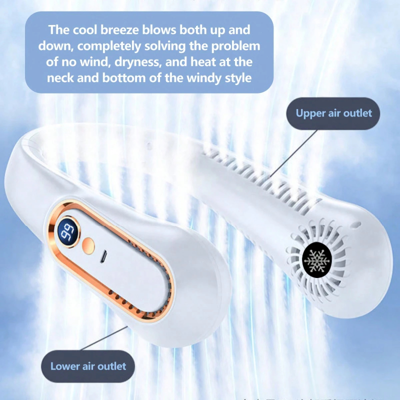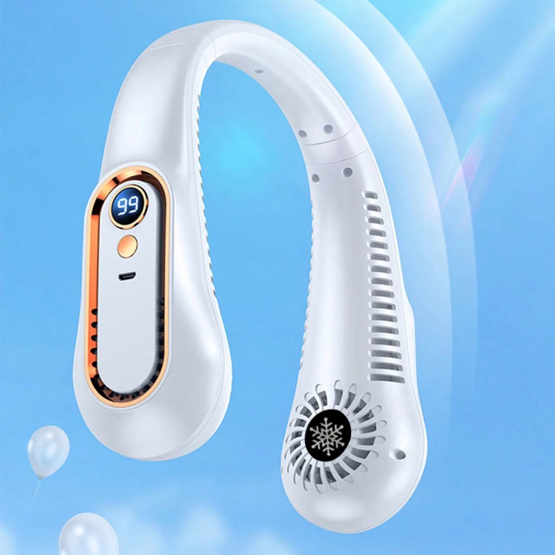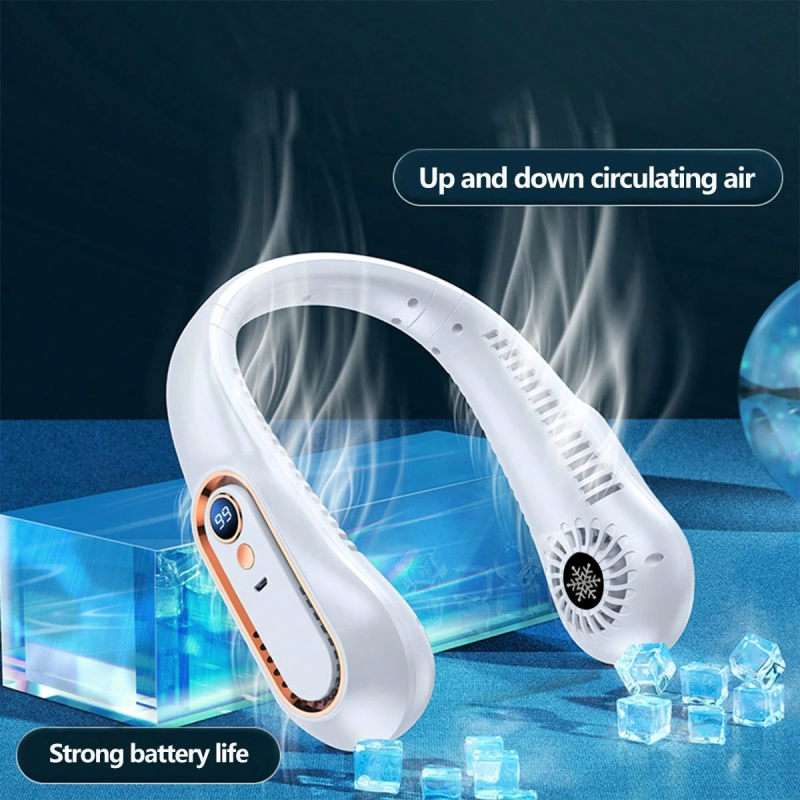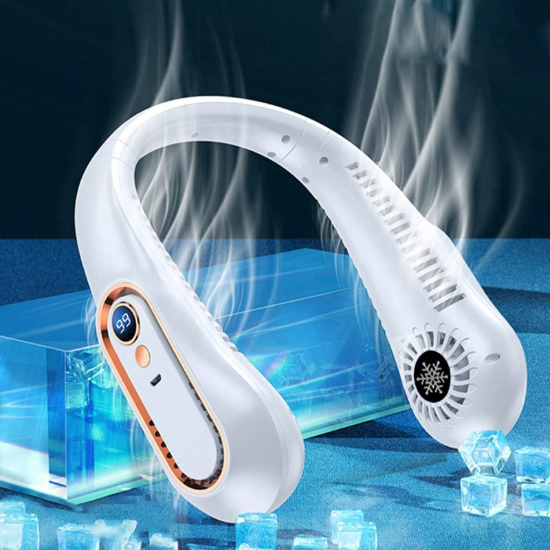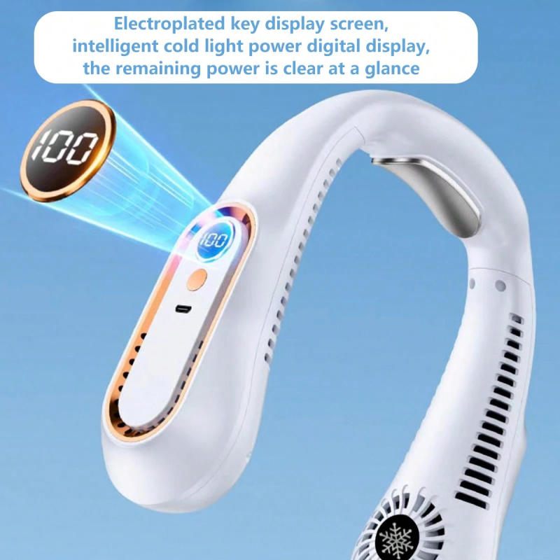 Smart LED Display Bladeless Neck Fan Portable Halter-Style Wearable Fan with Quiet Powerful Airflow, USB Rechargeable, Ideal for Indoor & Outdoor Use, Office & Travel