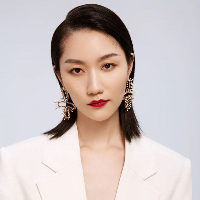 Stamens Collection Four Stamens Earrings With White Enamel